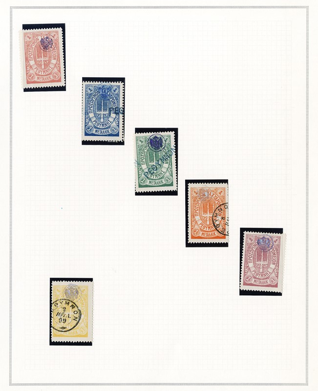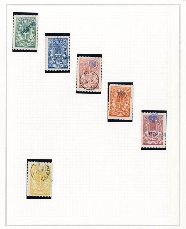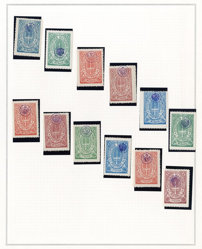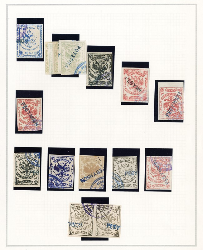 1899 - TERRITORI GRECI - CRETA - UFFICIO POSTALE RUSSO: avanzata collezione delle emissioni russe di Rethymno, compresi i rari valori in colore nero (nuovi e annullati) e le coppie non dentellate dei tre valori in viola, verde e arancione (stima oltre Euro 19.000)