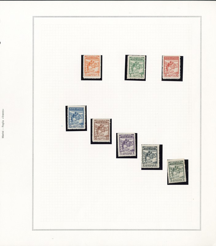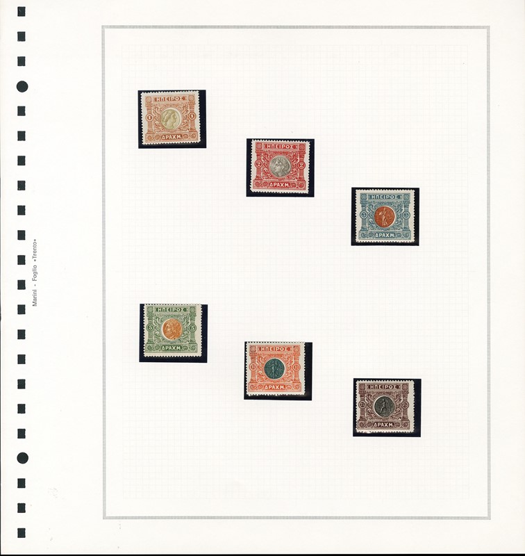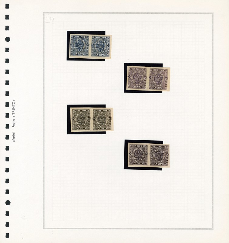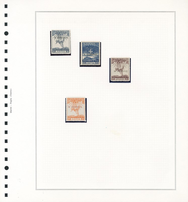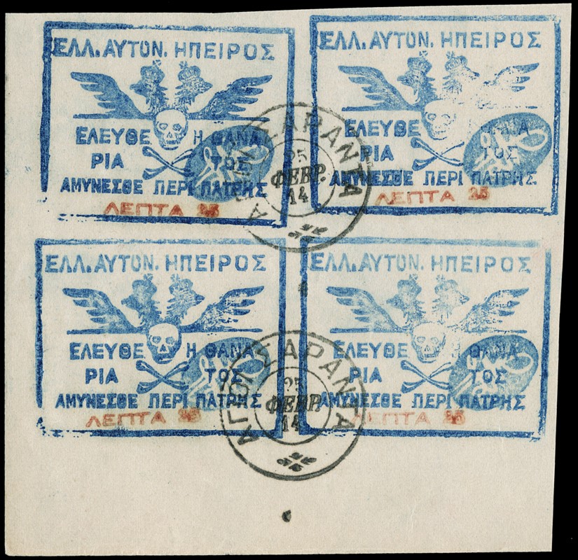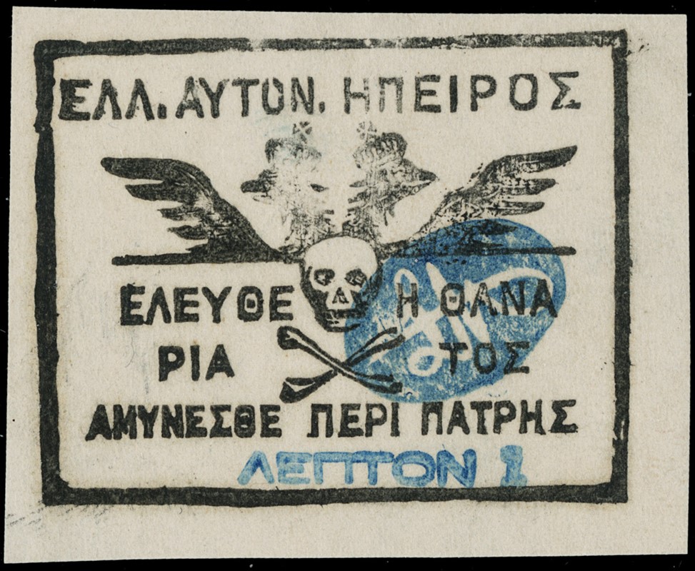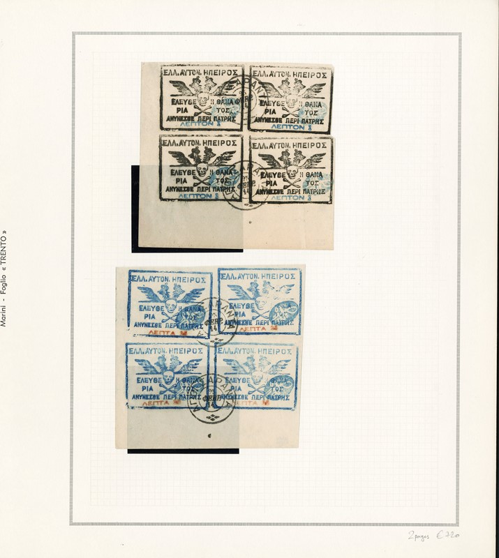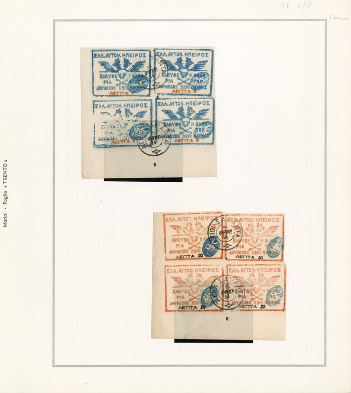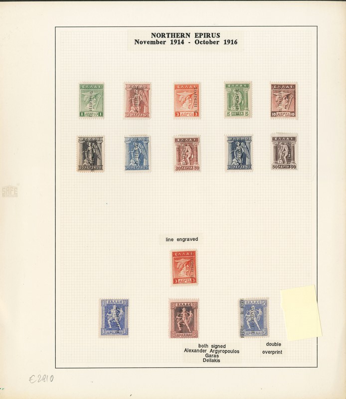 1914/16 - TERRITORI GRECI - ALBANIA: EPIRO DEL NORD E AUTONOMO: collezione delle emissioni greche dell'Epiro autonomo. Include la famosa emissione “Teschi' nuova, una serie su frammento (annullata a Himara) e firmata da S. Spiromilios (Capitano e Governatore di Himara) e BL4 AdF (prime ristampe annullate con Agii Saranda). Comprese anche la serie di Re Costantino, i soprastampati di Himara, gli alti valori dei soprastampati dell'Epiro settentrionale. CF Raybaudi, Vlastos e Holcombe. Estremamente interessante (stima catalogo oltre Euro 26.500)