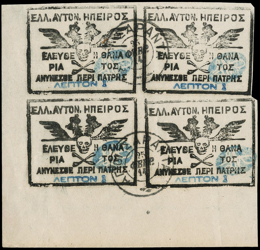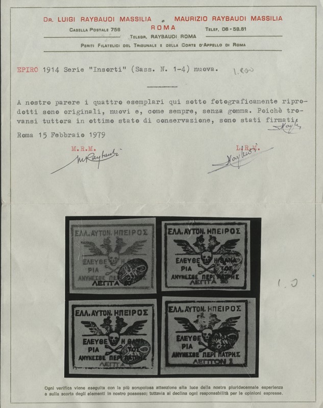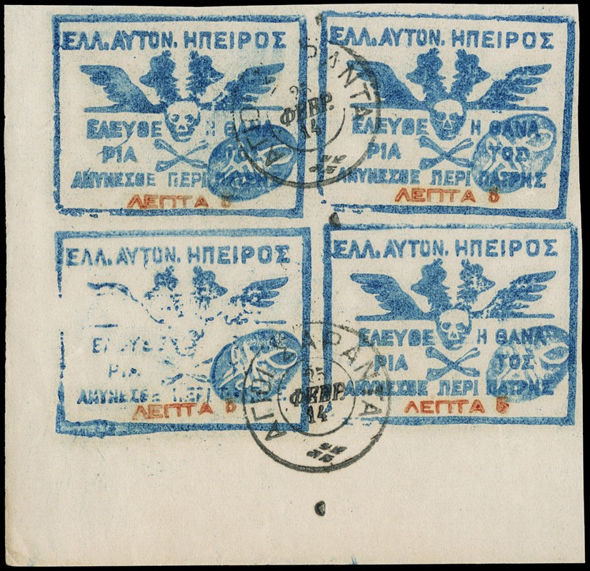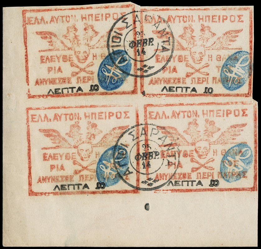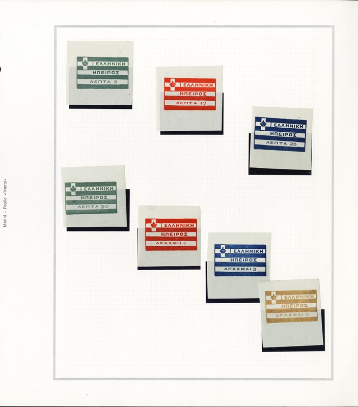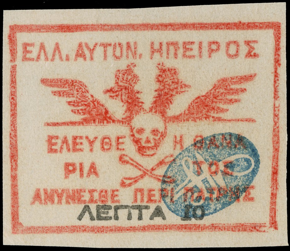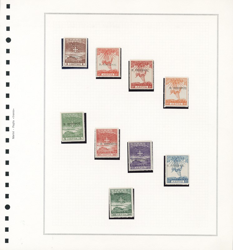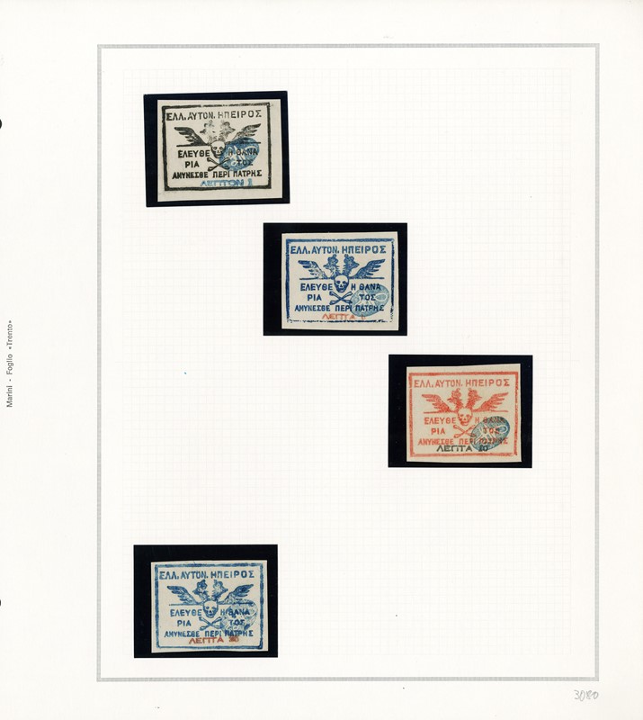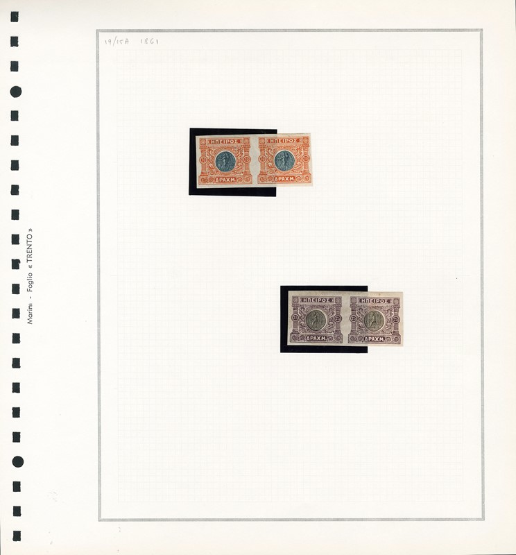 1914/16 - TERRITORI GRECI - ALBANIA: EPIRO DEL NORD E AUTONOMO: collezione delle emissioni greche dell'Epiro autonomo. Include la famosa emissione “Teschi' nuova, una serie su frammento (annullata a Himara) e firmata da S. Spiromilios (Capitano e Governatore di Himara) e BL4 AdF (prime ristampe annullate con Agii Saranda). Comprese anche la serie di Re Costantino, i soprastampati di Himara, gli alti valori dei soprastampati dell'Epiro settentrionale. CF Raybaudi, Vlastos e Holcombe. Estremamente interessante (stima catalogo oltre Euro 26.500)