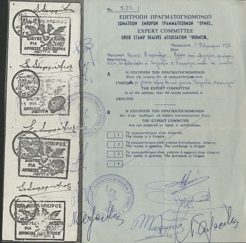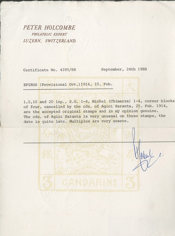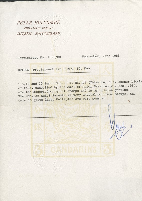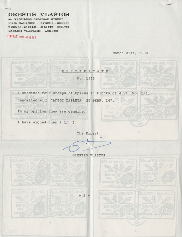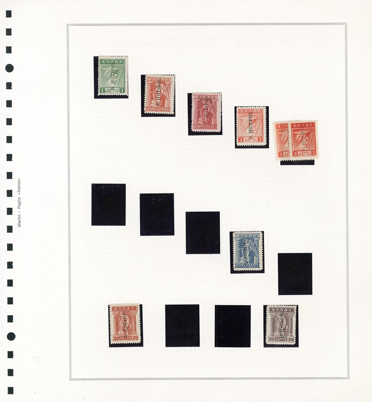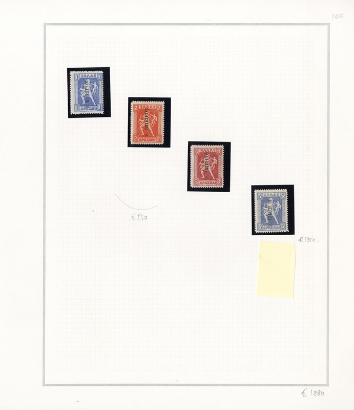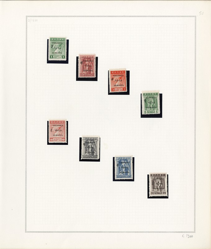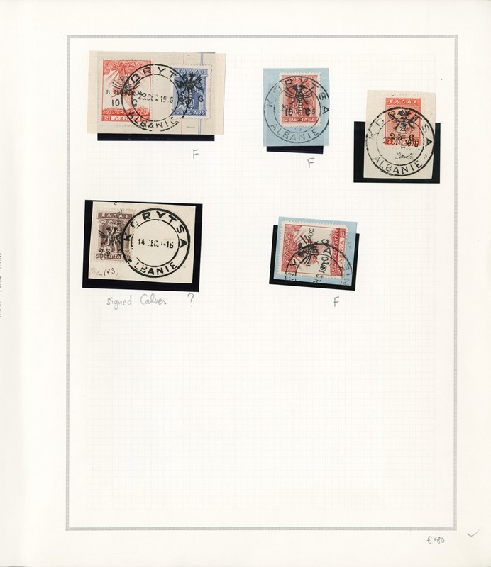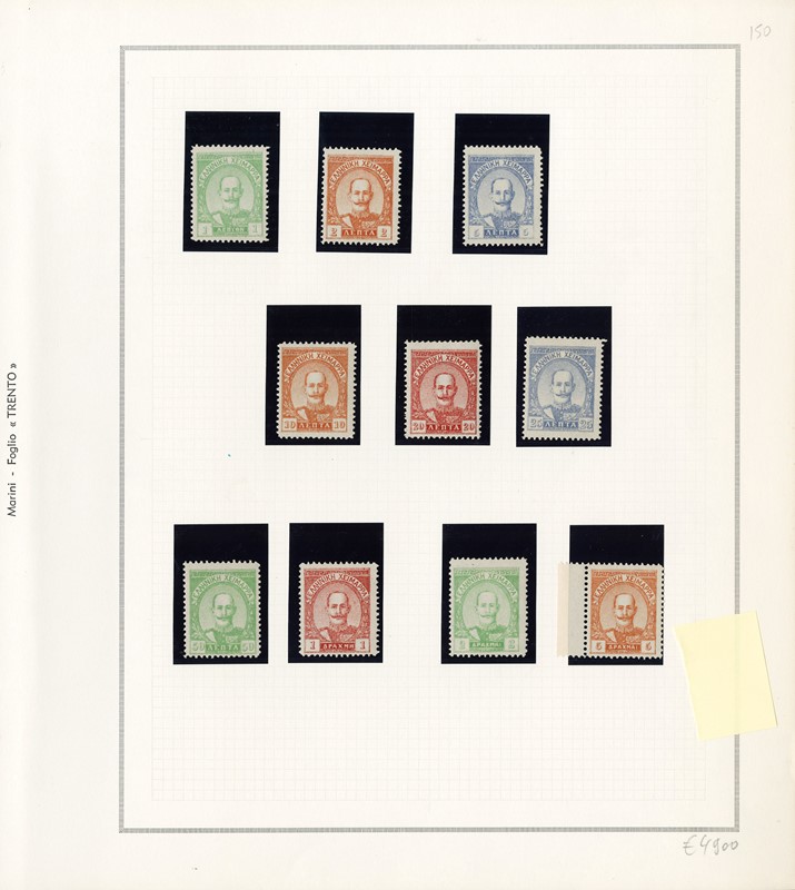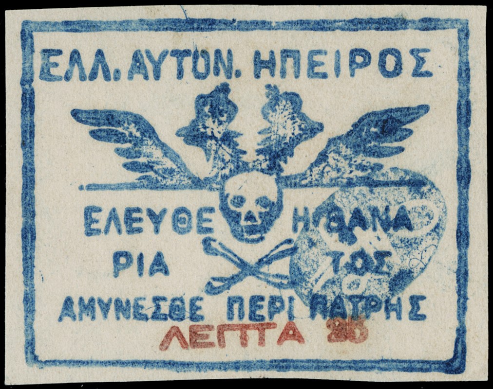 1914/16 - TERRITORI GRECI - ALBANIA: EPIRO DEL NORD E AUTONOMO: collezione delle emissioni greche dell'Epiro autonomo. Include la famosa emissione “Teschi' nuova, una serie su frammento (annullata a Himara) e firmata da S. Spiromilios (Capitano e Governatore di Himara) e BL4 AdF (prime ristampe annullate con Agii Saranda). Comprese anche la serie di Re Costantino, i soprastampati di Himara, gli alti valori dei soprastampati dell'Epiro settentrionale. CF Raybaudi, Vlastos e Holcombe. Estremamente interessante (stima catalogo oltre Euro 26.500)