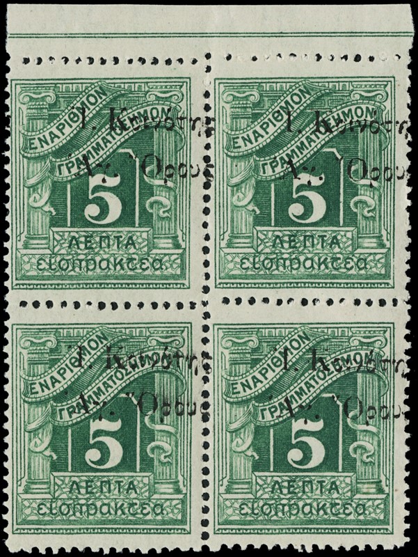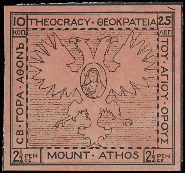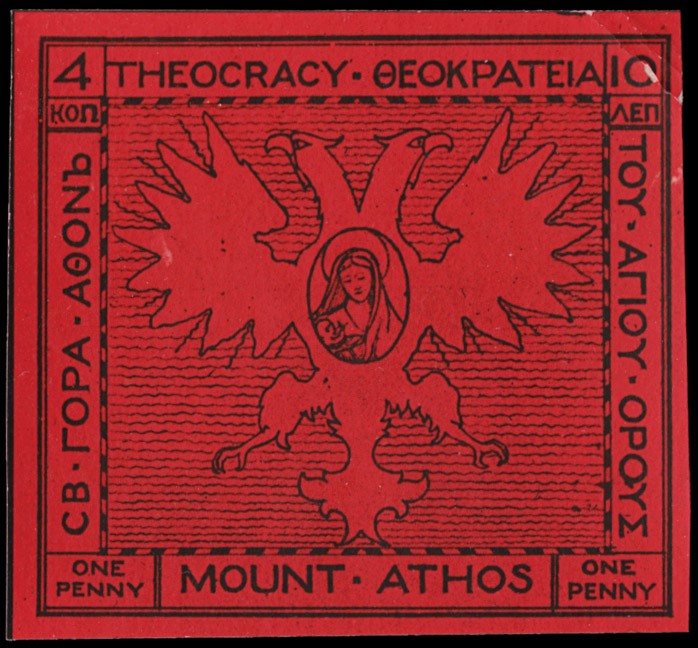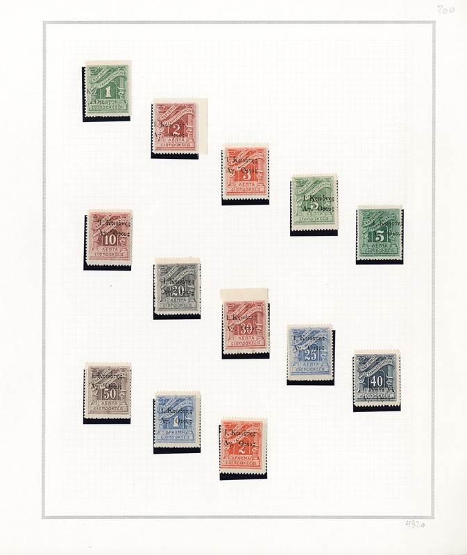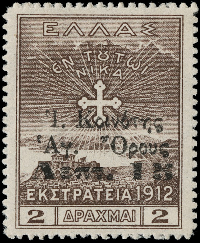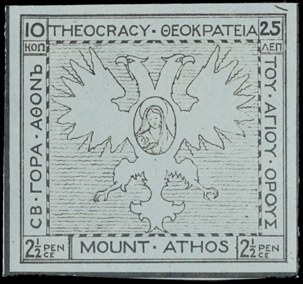 1916 - TERRITORI GRECI - MONTE ATHOS: isieme di francobolli nuovi dell'emissione militare britannica e soprastampe greche.Comrpende stampa fotografica di quattro francobolli preparati dall'esercito britannico (stampati e prodotti sulla portaerei H.M. “ARK ROYAL'), in tre valute (britannica, greca e russa). Inclusi inoltre francobolli greci soprastampati. Raro e molto interessante (stimaoltre Euro 14.000, senza quelli britannici)