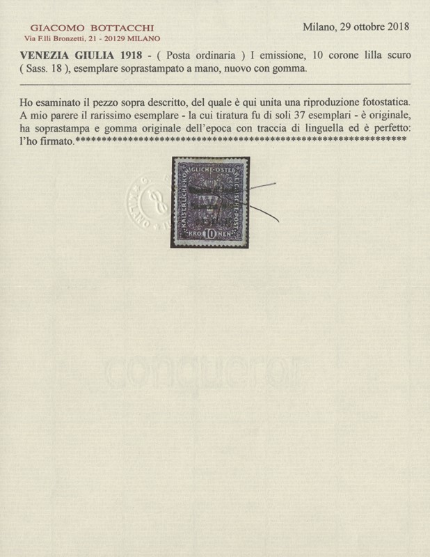 1918 - Venezia Giulia: 10k violetto scuro con pien