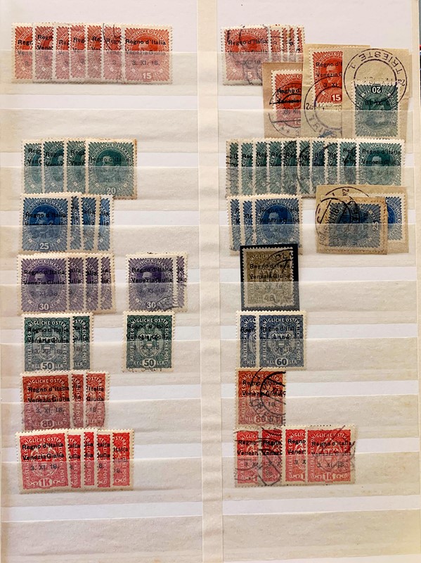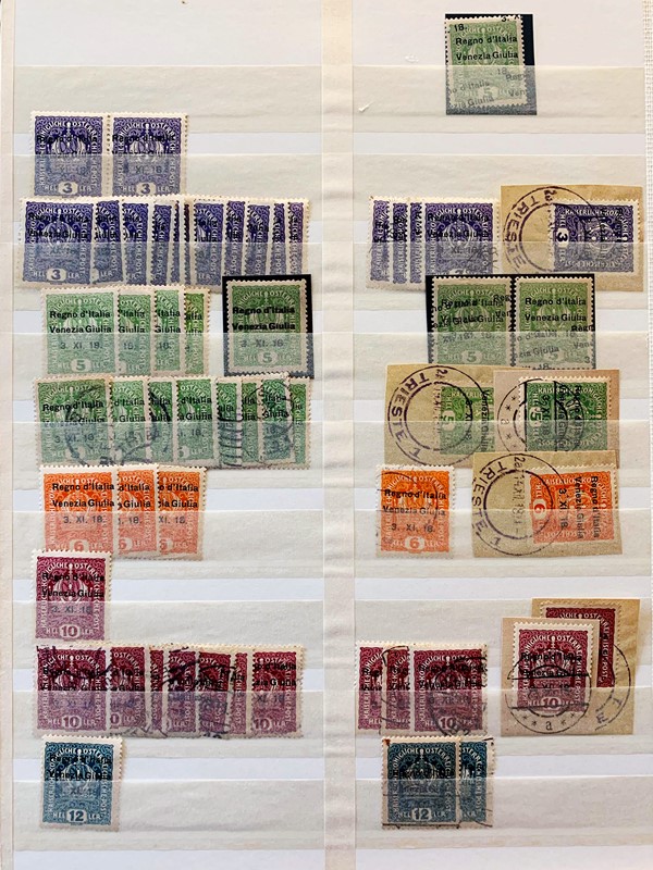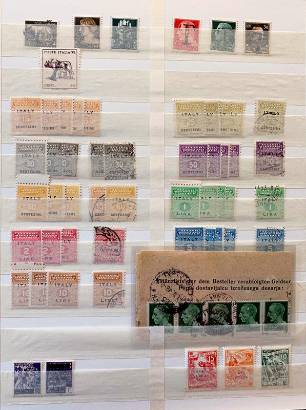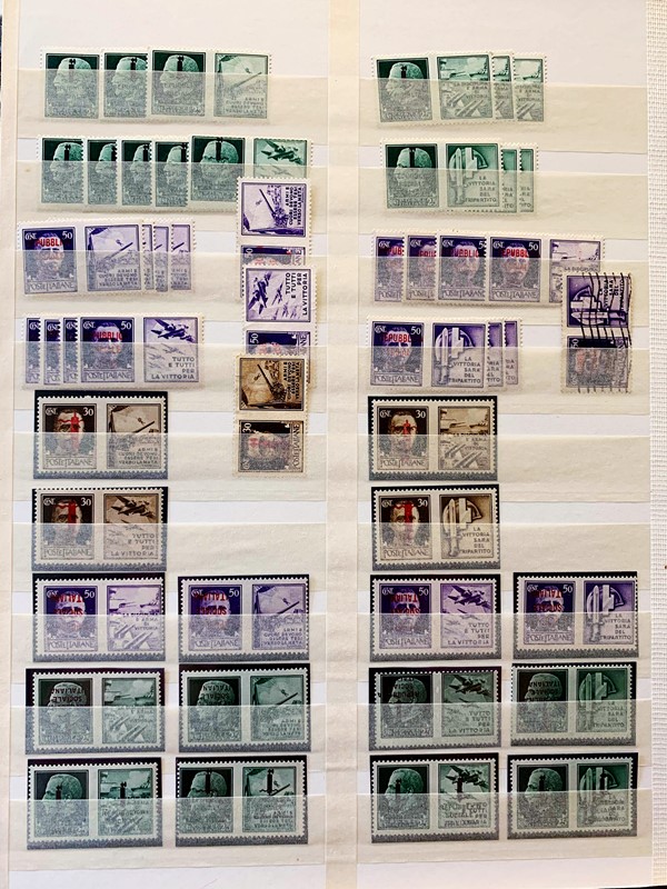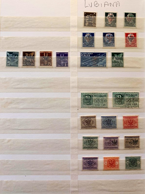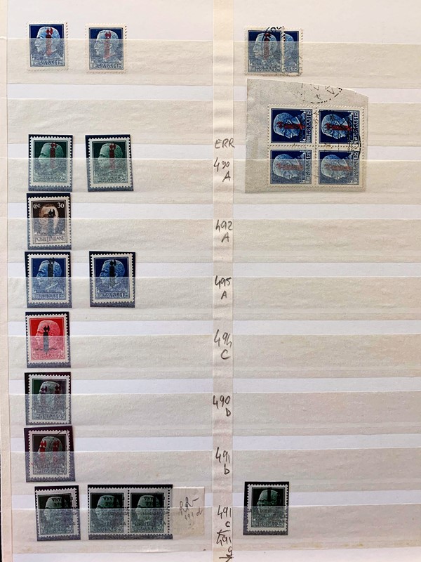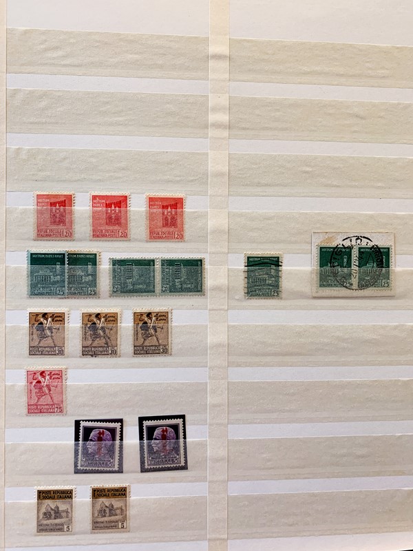 1918/44 - REGNO D'ITALIA - RSI: insieme di diverse centinaia di francobolli, nuovi e usati, delle varie emissioni di GNR, RSI, CLN e di alcune occupazioni italiane (Trentino, Venezia Giulia, Albania, Montenegro, Lubiana, Litorale Sloveno). Notate interessanti presenze e alcune ripetizioni. Insieme di qualita' mista. Alto valore di catalogo. Un classificatore