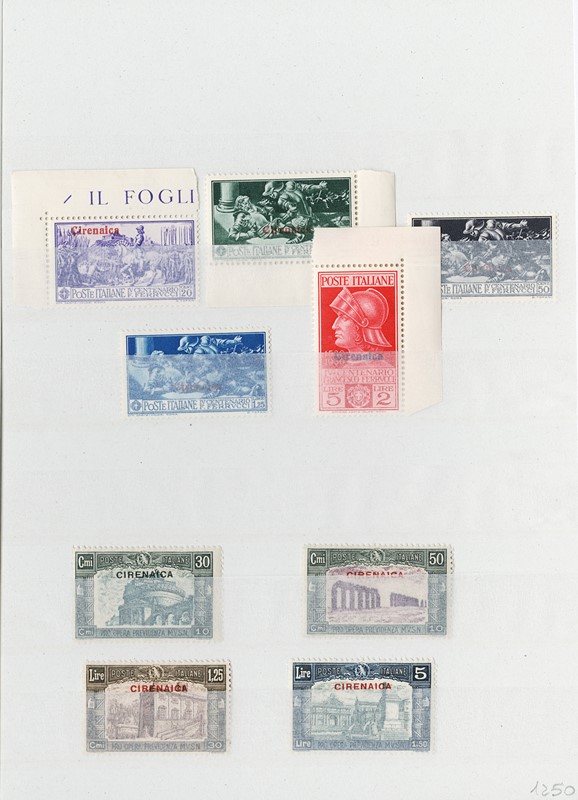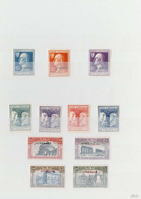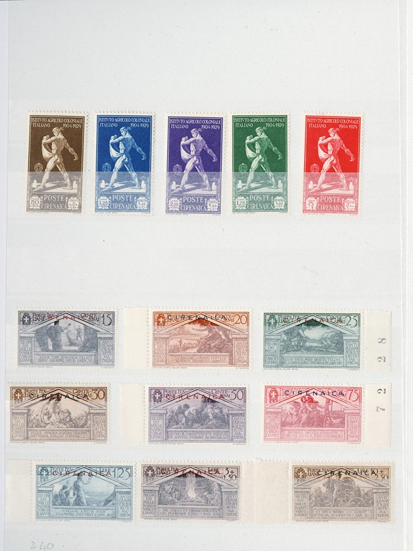 1923/24 - COLONIE ITALIANE - CIRENAICA: collezione molto avanzata di francobolli nuovi SL, mancante della Coroncina. La serie Roma-Mogadiscio di PA e' bicolore, altrimenti buona qualita' generale, tutto raccolto in un classificatore. 1 CF (Sassone oltre E