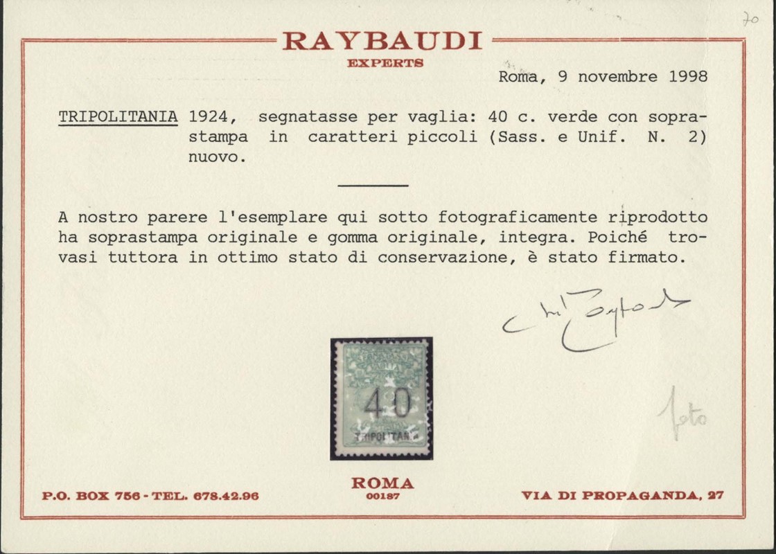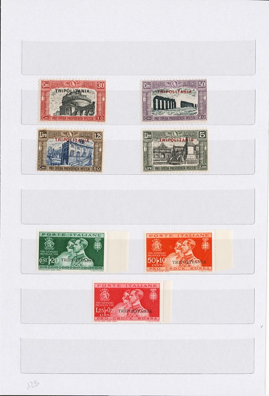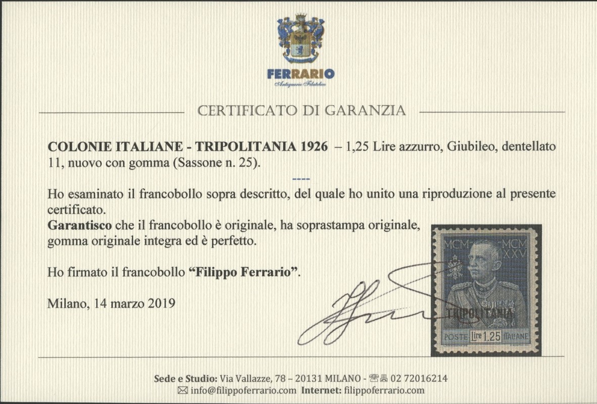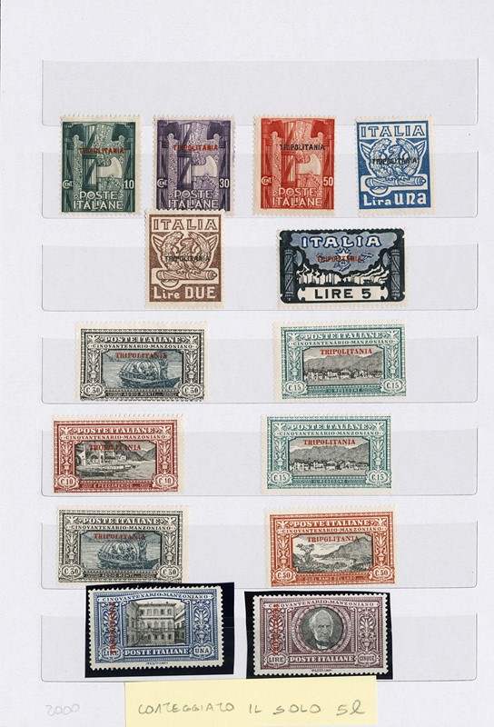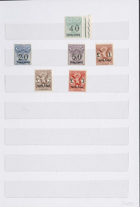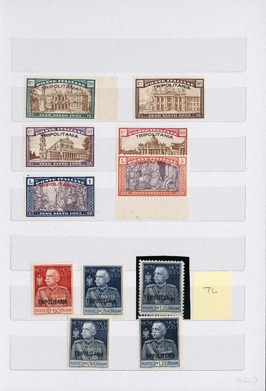 1923/34 - COLONIE ITALIANE - TRIPOLITANIA: collezione molto avanzata di francobolli nuovi SL. Alcuni TL come l'1,25L dent.11 Giubileo e la Coroncina (piccola spelatura, non contata nel totale). Presente la serie Tasse Vaglia con caratteri piccoli. Ottima