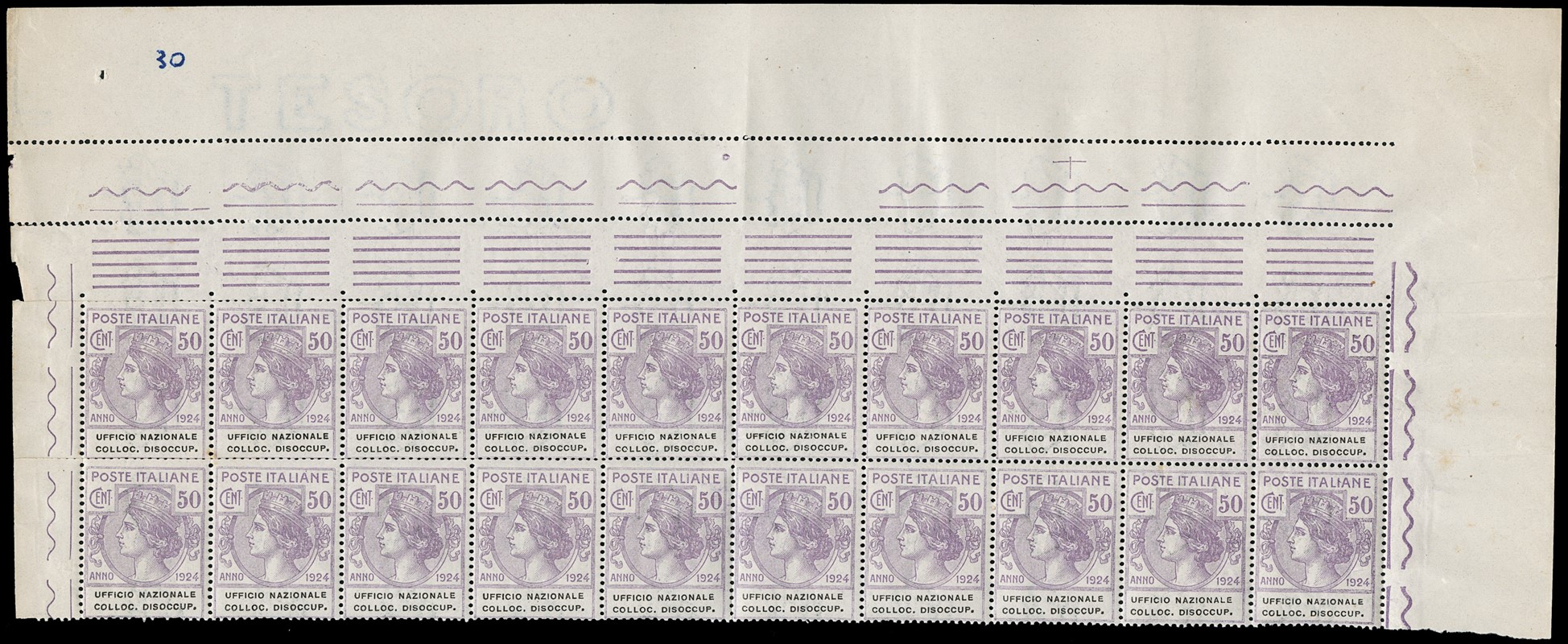 1924 - REGNO D'ITALIA - ENTI PARASTATALI: insieme composto da quattro BL4, un BL6, due BL20 di spezzature dei vari Enti, SL. Insieme di ottima qualita' (Sassone 4+19+36+37+64+66+67 - Euro 5.500+)