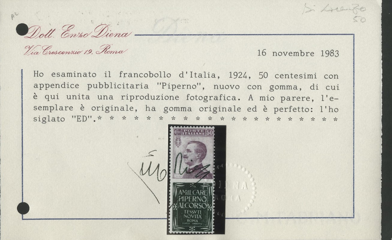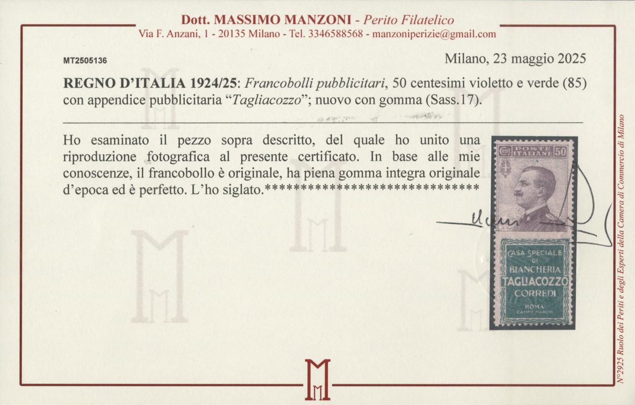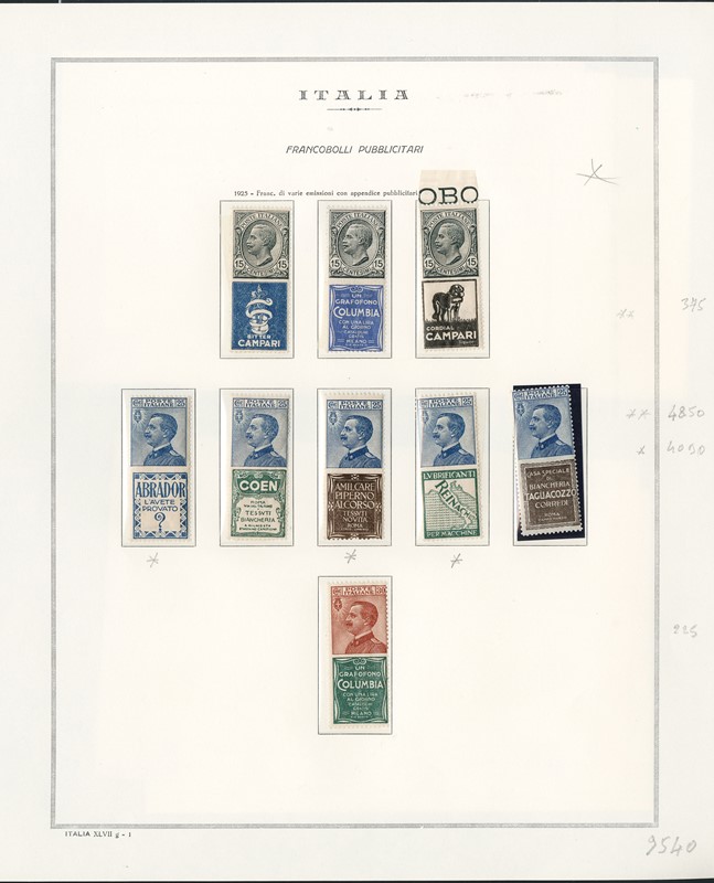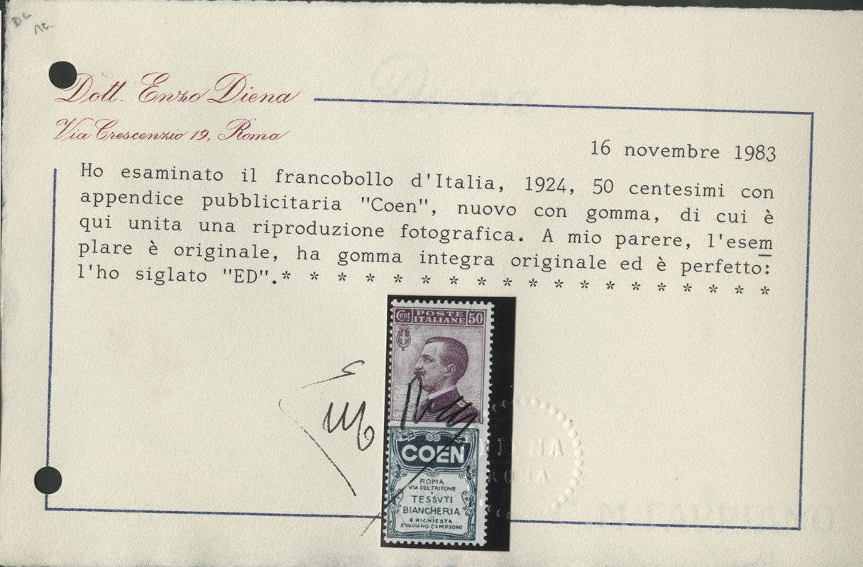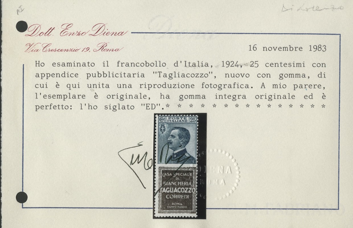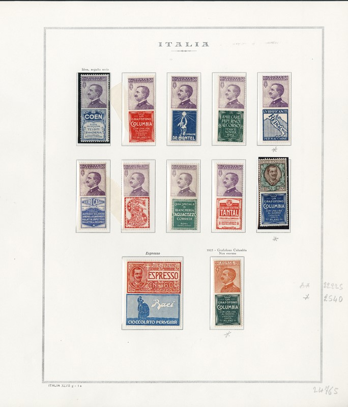 1925 - Pubblicitari, la serie completa di 21 valori nuovi, TL e SL. 7 CF (Sassone PUB1/21 - Euro 34.305)