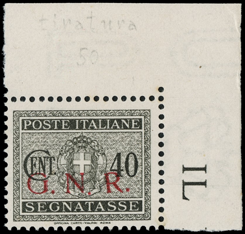 1943 - GNR, Segnatasse, 40c grigio bruno, soprasta