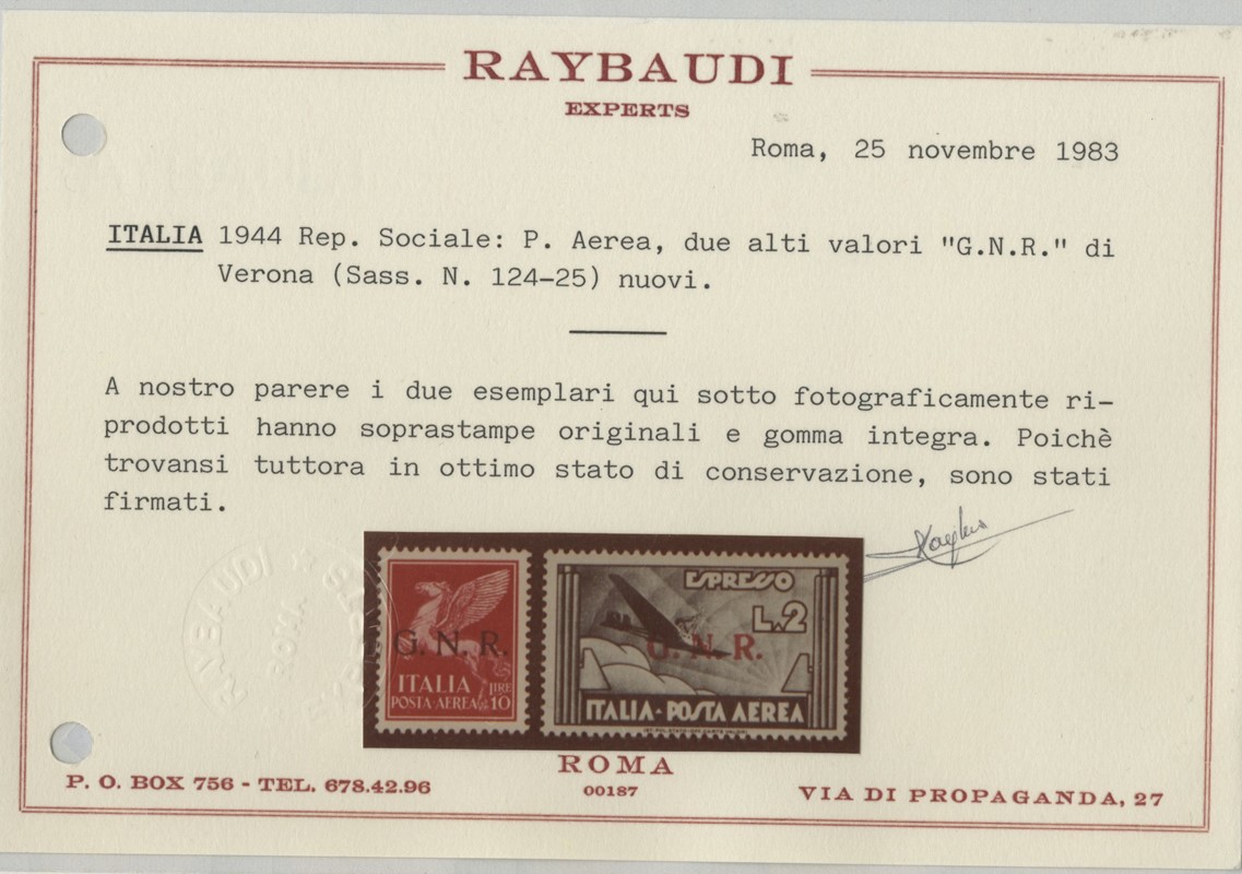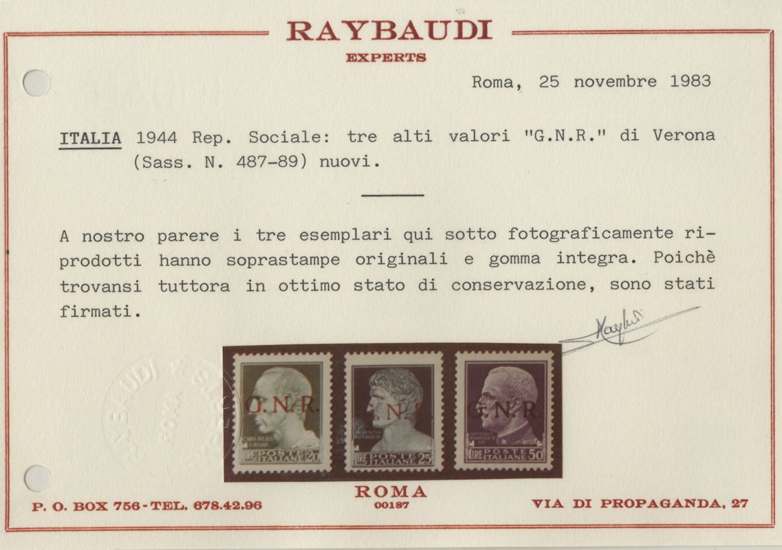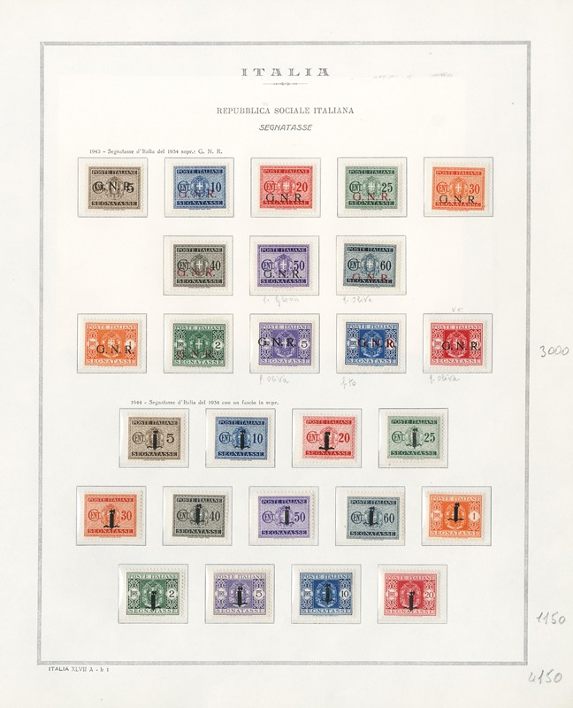 1943/44 - REGNO D'ITALIA - RSI: avanzata collezione di francobolli nuovi di GNR/RSI, comprendente Pacchi e Segnatasse, praticamente tutti SL. Ottima qualita' generale. 3 CF (Sassone oltre Euro 21.000)
