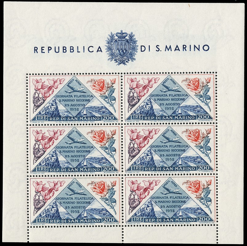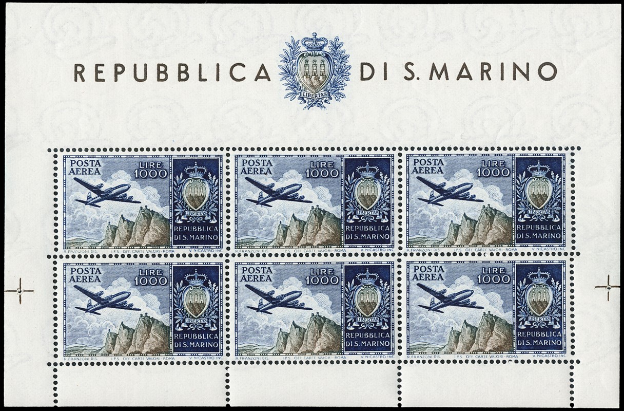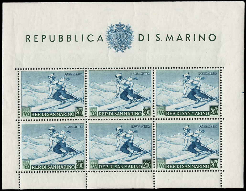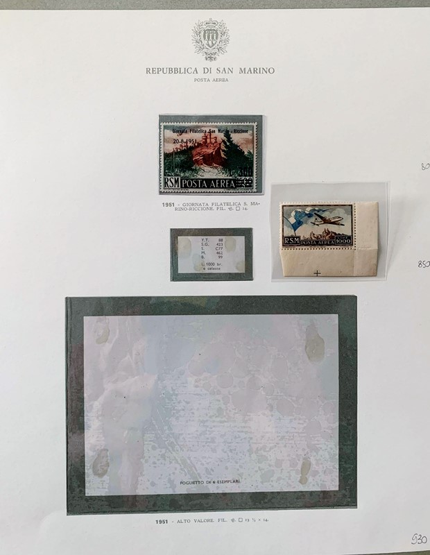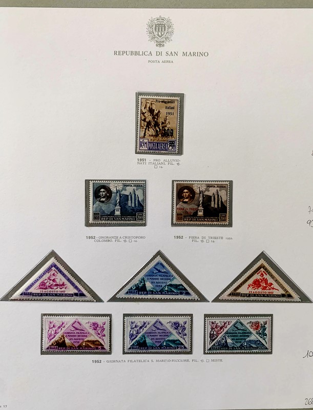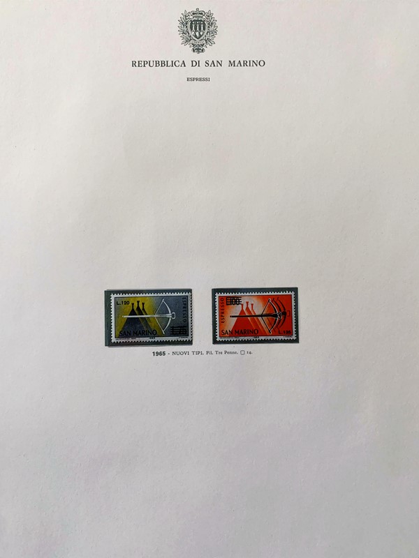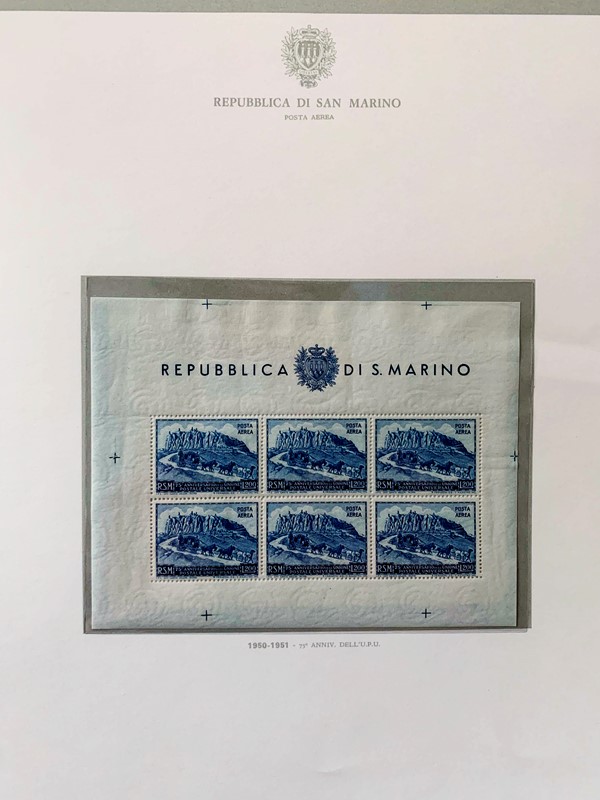 1943/82 - SAN MARINO: collezione quasi completa di francobolli del periodo, praticamente tutti SL, completa di PO, PA ed espressi. Presenti PP, tasse, foglietti e blocchi fogli tranne i rari; il tutto montato su fogli GBE in tre album, l'ultimo con le novita' non conteggiate del valore di catalogo. 1 CF. Occasione (Sassone circa Euro 19.000)