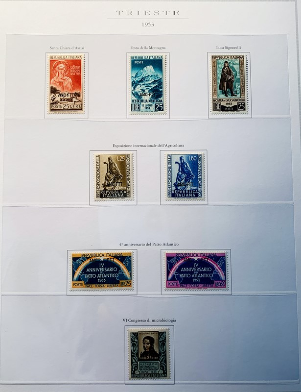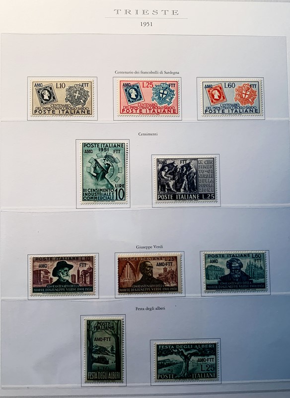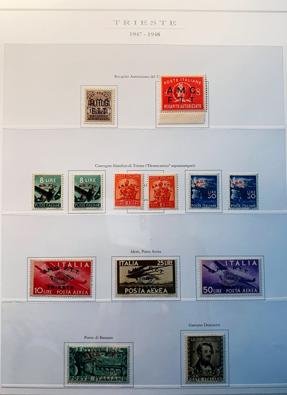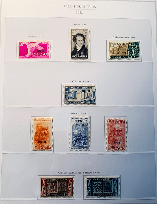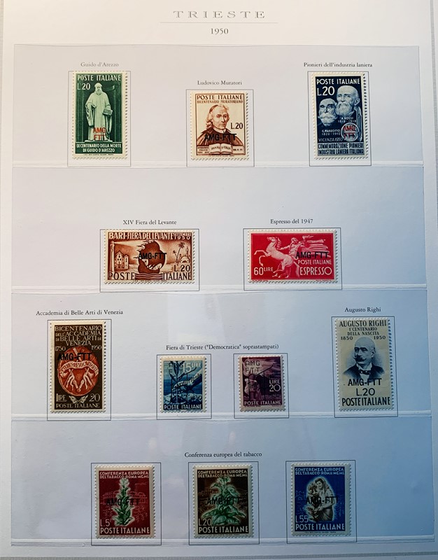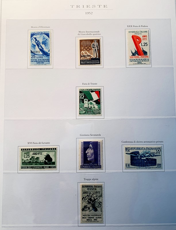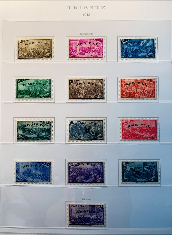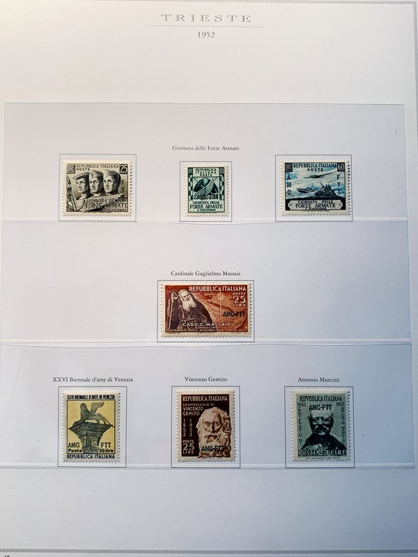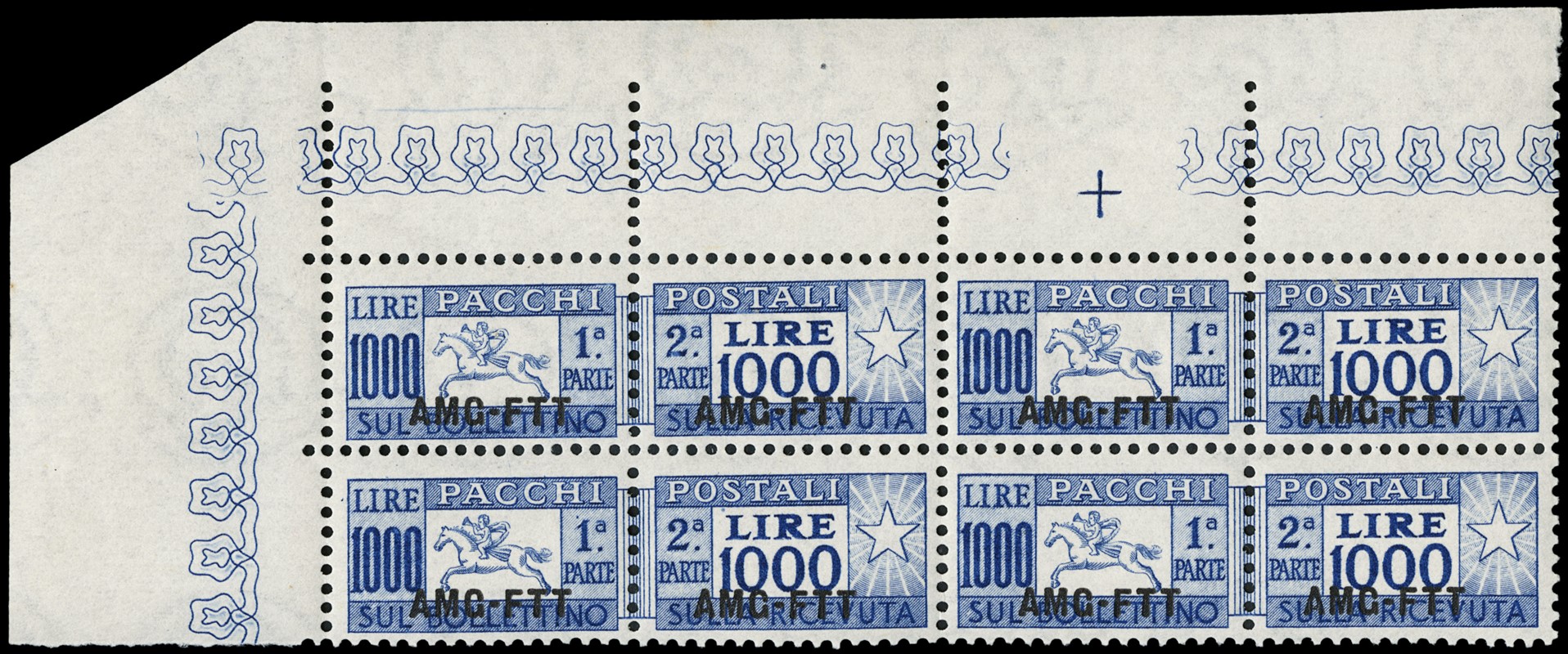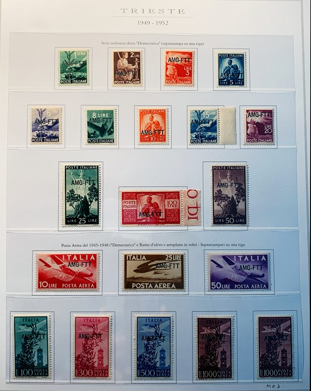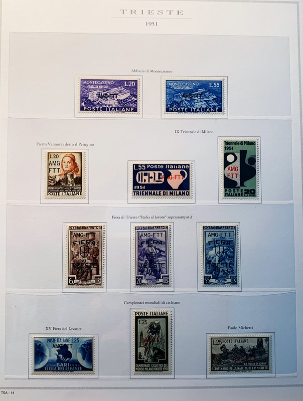 1945/54 - TRIESTE A: collezione completa di francobolli nuovi prevalentemente SL, comprendente i Servizi, incluse le nuove soprastampe del 50L PA e del 25L Tasse. Notati il 100L Pacchi Postali dent.13 1/4 e una quartina del Cavallino (Sassone oltre Euro 1