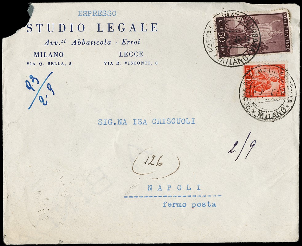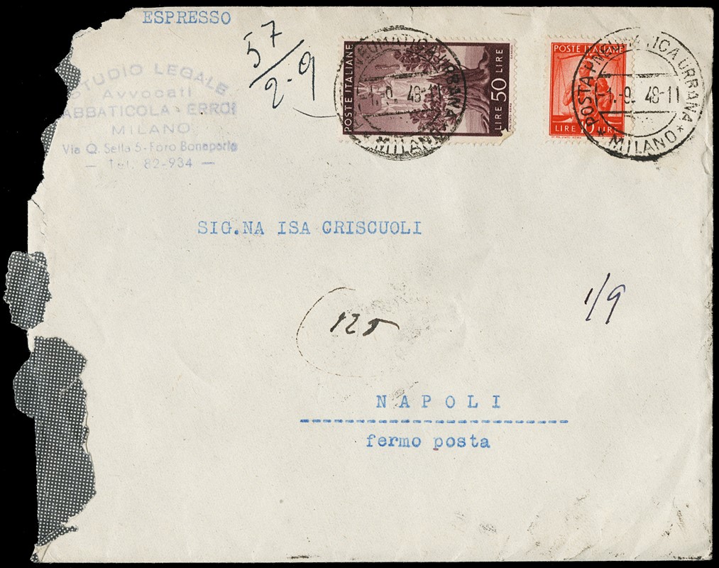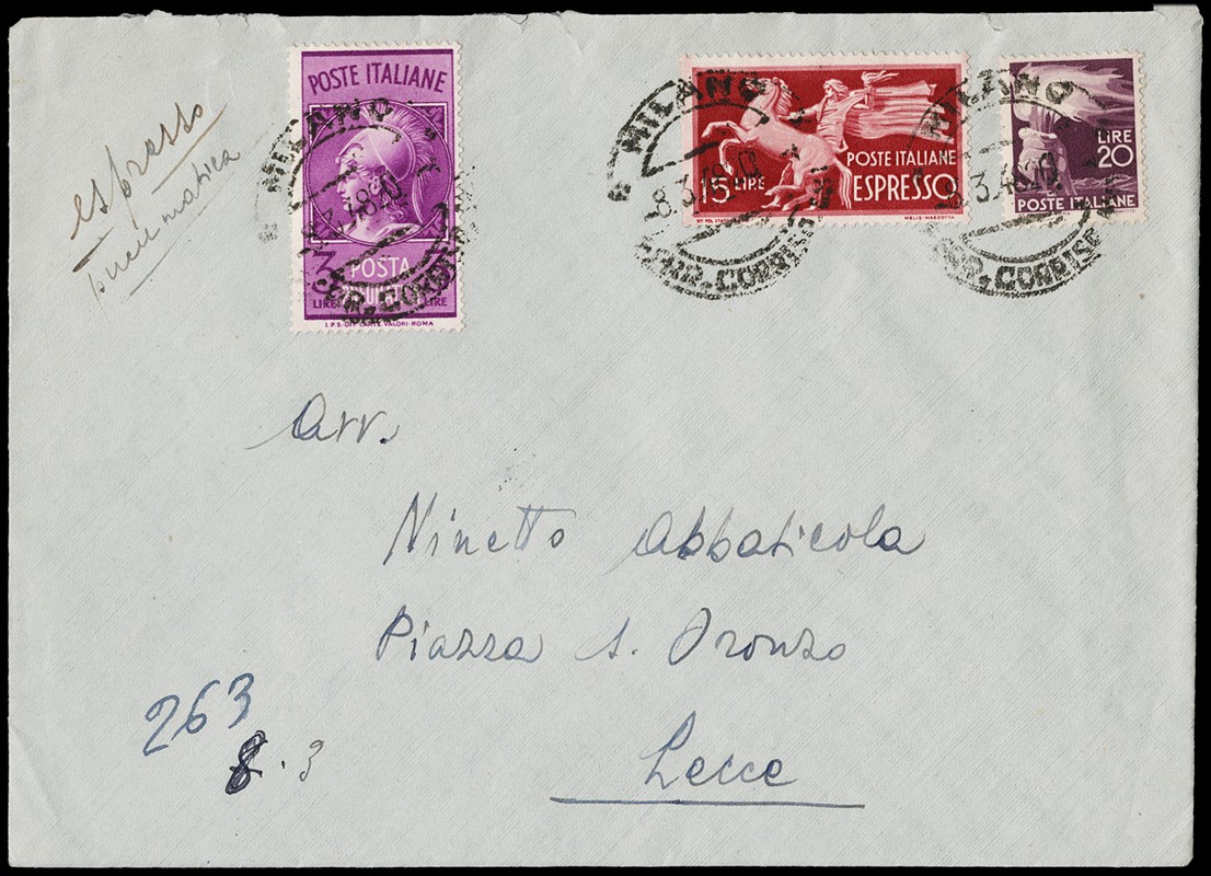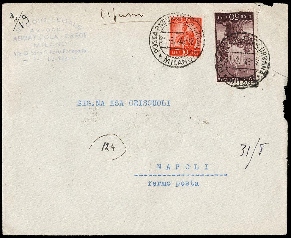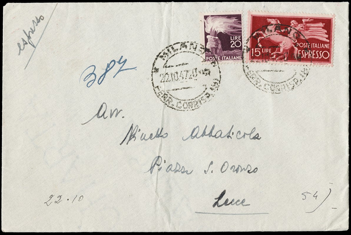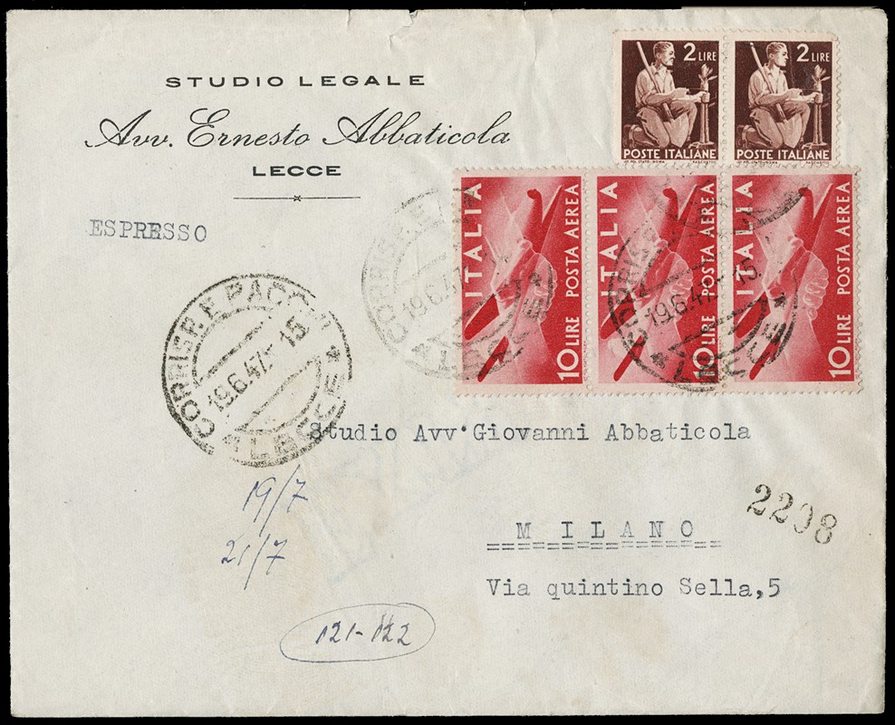 1947 - REPUBBLICA: Insieme di oltre 200 lettere d'archivio con affrancature della serie Democratica, con diverse combinazioni interessanti, qualita' mista. Insieme stimolante e divertente per l'amatore e il professionista