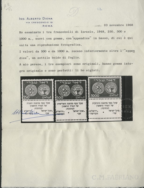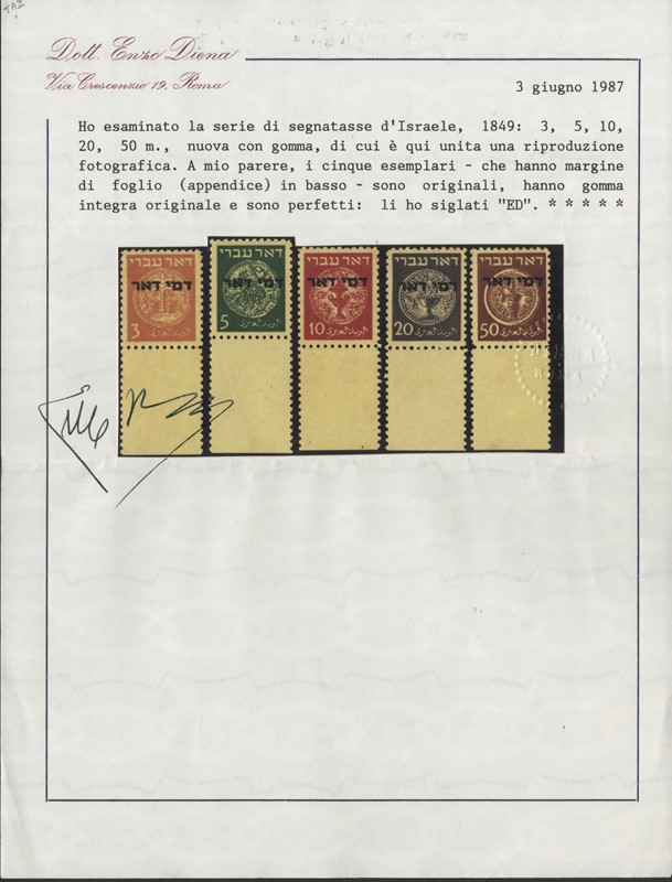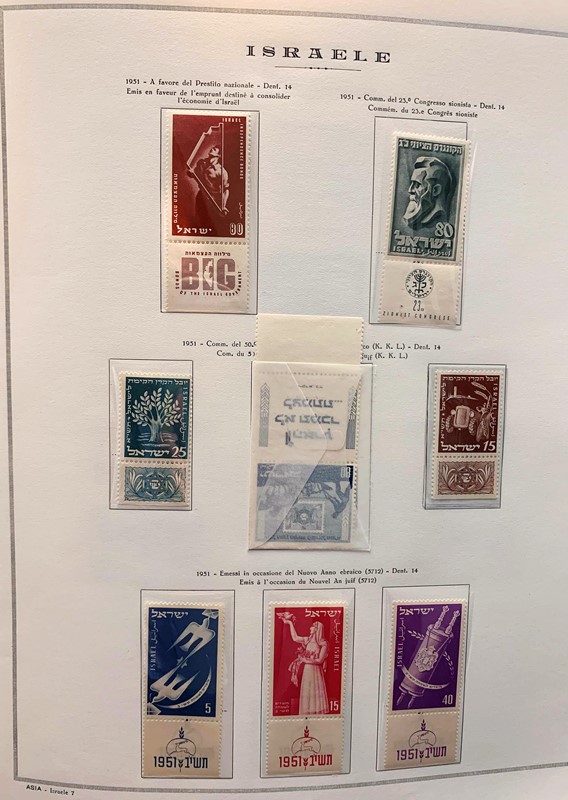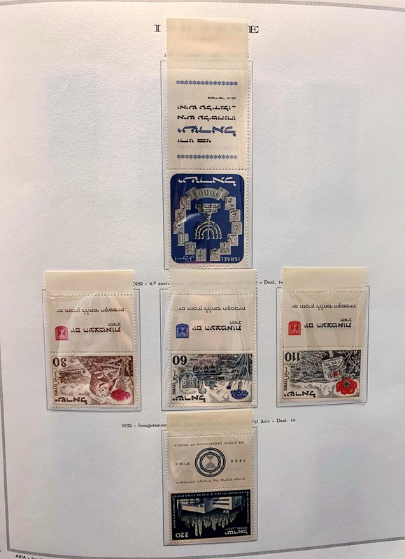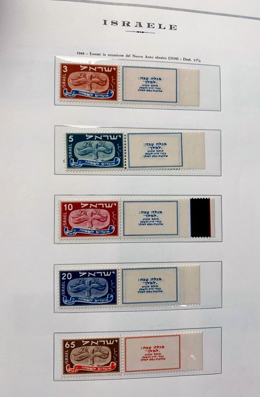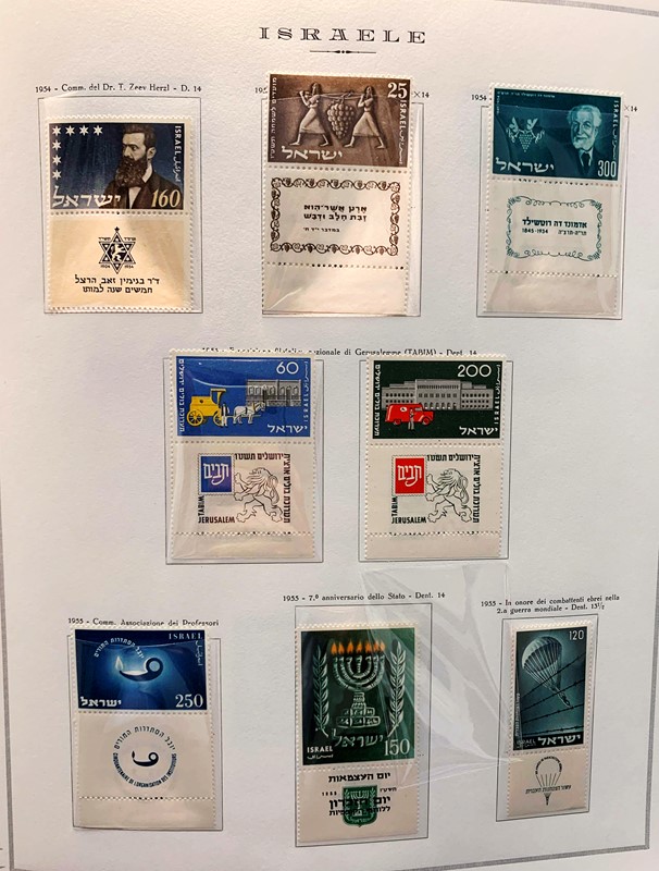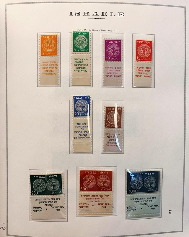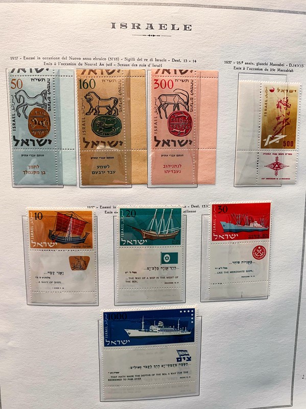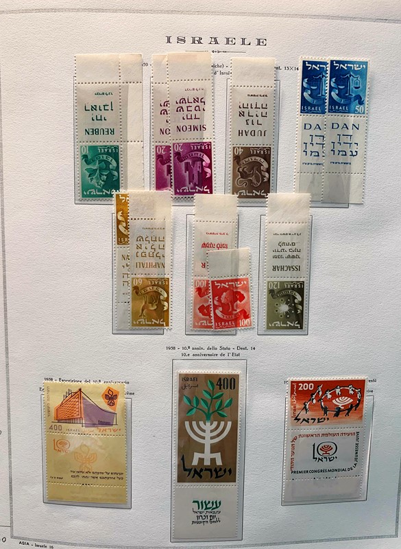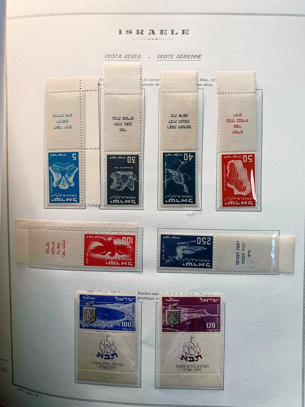 1948/82 - ISRAELE: collezione completa di francobolli nuovi SL con bandelle e sotto bandelle del periodo, incluse tasse, montata su album con taschine Marini. Ottima qualita', elevato valore di catalogo, 2 CF (Yvert - Euro 27.000)