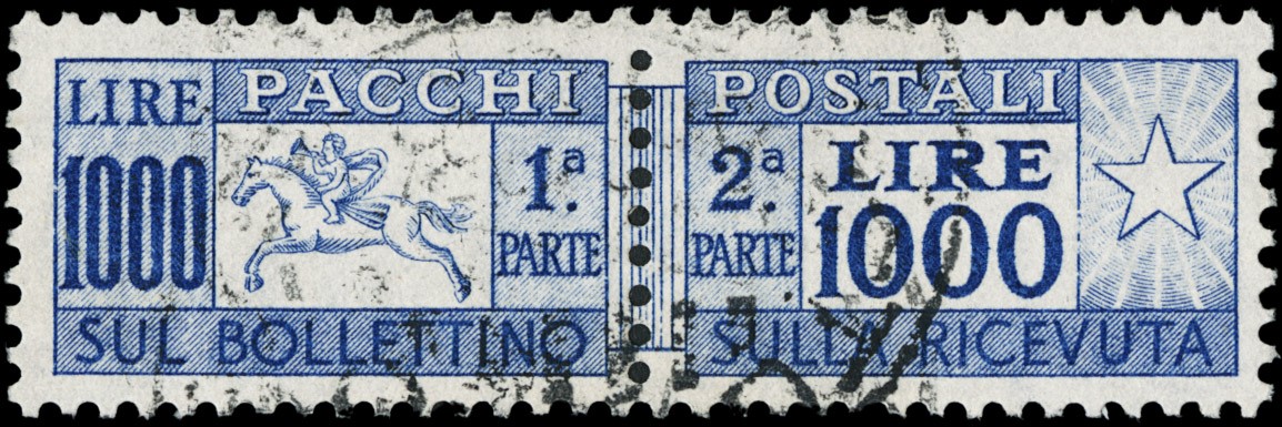 1954 - Pacchi Postali, 1000L oltremare, filigrana