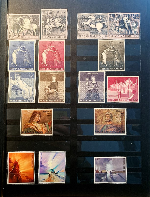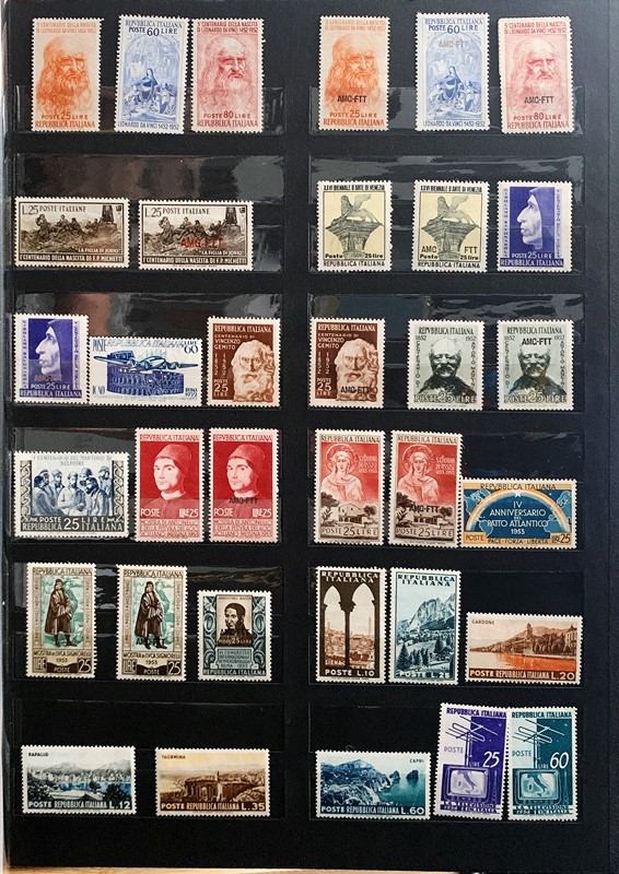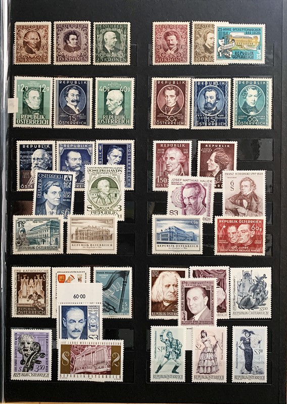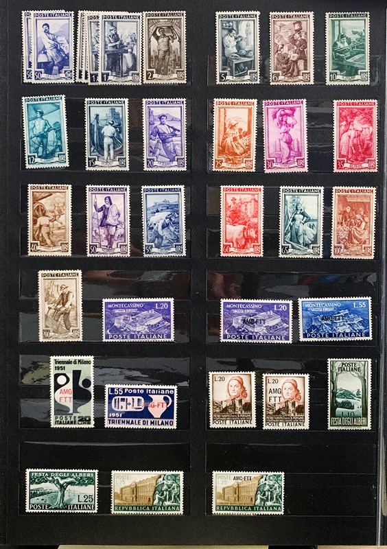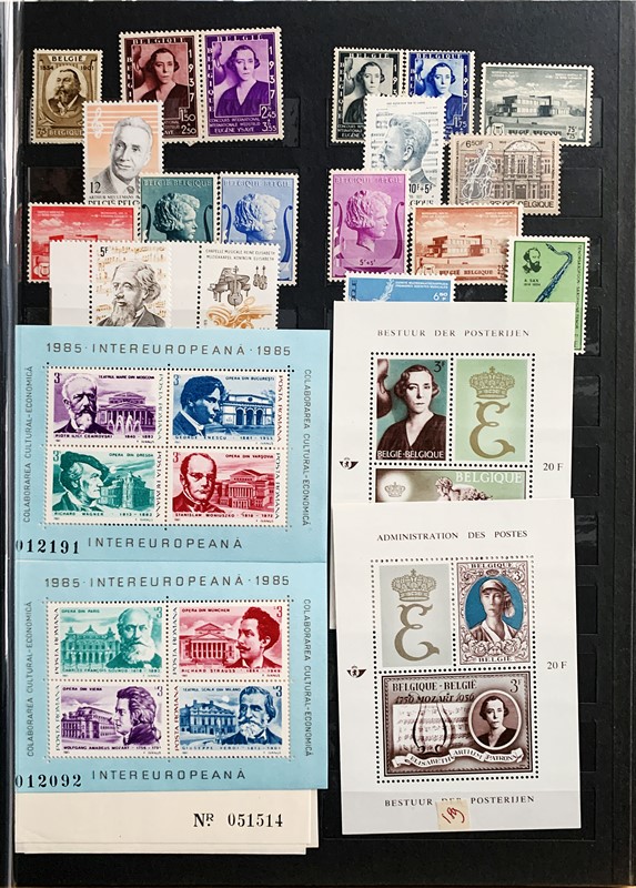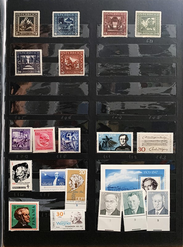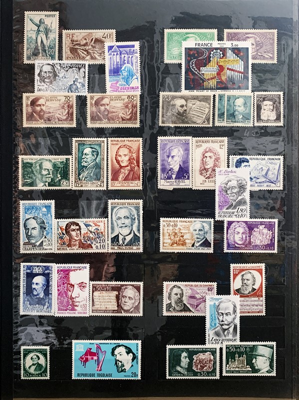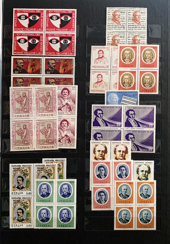 MONDO: accumulazione di spezzature prevalentemente nuove di francobolli e serie SL/TL dell'area italiana e di estero a tematica musica. Qualche buona presenza, il tutto montato su quattro classificatori.