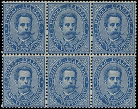 1879 – Umberto, 25 c azzurro BL6, discreta centrat, 1879
