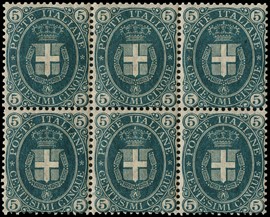 1889 - Umberto, 5c verde scuro nuovo BL6, discreta, 1889