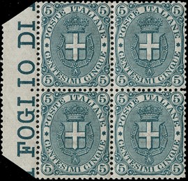 1891/96 – 5c verde BL4 con margine di gruppo a sin, 1891/96
