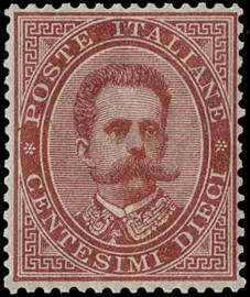 1879 - Umberto, 10c carminio SL, buona/ottima cent, 1879