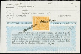 1874 - 10c ocra arancio 'ANNULLATO' due volte su p, 1874