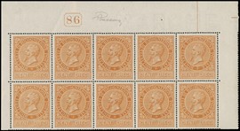 1874 - 10c ocra arancio BL10 BdF da tre lati con n, 1874