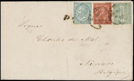 1874 - 1c verde oliva, 2c rosso mattone e 5c verde, 1874