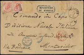 1868 - 2L scarlatto, DLR (LO), due esemplari annul, 1868