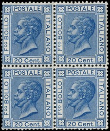 1868 - 10c vermiglio arancio, BL4 BdF superiore co, 1868