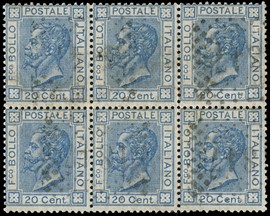 1867 - 20c azzurro lillaceo chiaro Bigola BL6 annu, 1867