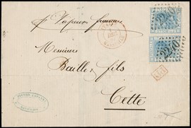 1867 - 20c azzurro Bigola BL4, i due esemplari inf, 1867