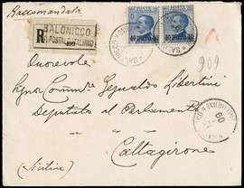 1909/43 - LEVANTE ITALIANO: insieme di tre diversi oggetti postali, affrancati. Un'imitazione, comunque interes [..]