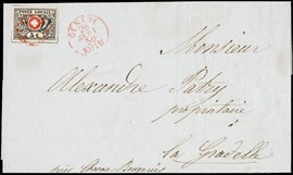1849 - GINEVRA: 5c nero intenso annullato rosetta rossa da 'GENEVE 26 SEPT 70' (C1 rosso) per La Gravelle. CF [..]