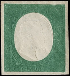 1853 - II emissione, 5c verde con doppia impressio, 1853