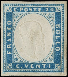 1855 - 20c cobalto latteo, tir.55, nuovo. Raro e splendido. Sigla A.Diena, CF Manzoni (Sassone 15ca - Euro 17.5 [..]