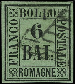 1859 - 6b verde giallo con grandi margini, annullato con muto a griglia. Raro. Firma G.Oliva, CF A.Diena e Bottacchi [..]