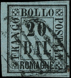1851 - I emissione, 20c azzurro chiaro, I tir., du, 1851