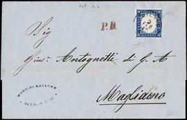 1855 - 20c cobalto oltremare da 'MILANO 2 FEB 60' per Magliano, in tariffa ridotta di secondo raggio limitrofo [..]