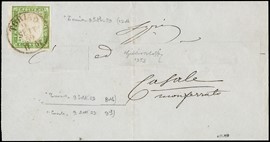 1855 - 5c verde giallo chiaro su circolare (piccola parte dell'indirizzo ritagliato) da 'TORINO 9 SETT 59' a Casale. [..]
