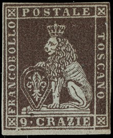 1859 - 9cr bruno lillaceo, con margini bianchi regolari sui quattro lati, nuovo. Rarissimo e splendido. CF A.Diena, [..]