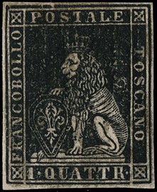 1857 - 1q nero con grandi margini bianchi regolari, 1857