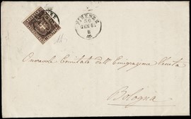 1860 - 1c violetto bruno ben marginato su circolare da 'FIRENZE 30 GEN 61' a Bologna. Sigla A.Diena, CF Manzoni [..]