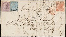 1863 - 40c rosa carminio e 60c lilla chiaro, entrambi DLR (LO), da 'TORINO 23 DICEMBRE 1863' a Stoccolma, via [..]