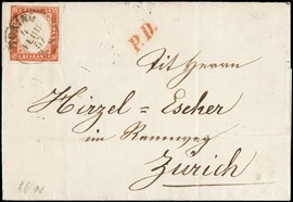1855 - Sardegna, IV emissione, 40c vermiglio, da 'TORINO 4 FEBB 57' a Zurigo (Sassone 16a - Euro 3.000)