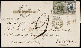 1863 - 15c azzurro litografico II tipo con DLR (LO) 5c grigio verde, da 'FIRENZE 21 DICEMBRE 1863' a Verona. Francobolli [..]