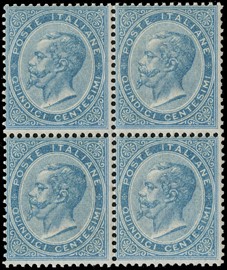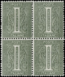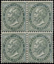 1863 - 1c grigio nero, BL10 (il quinto superiore destro a filo, tutti gli altri con ottimi margini) e DLR Londra [..]