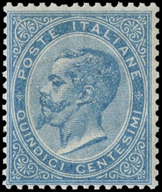 1863 - 15c azzurro litografico II tipo con DLR (LO, 1863