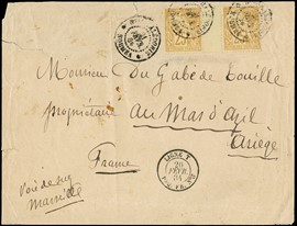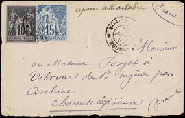 1871/75 - MAURITIUS: Francia: Ceres 10c rosa e 30c bruno, annullati con timbro ottogonale 'COL. FR. PAQ. FR. N. [..]