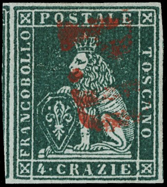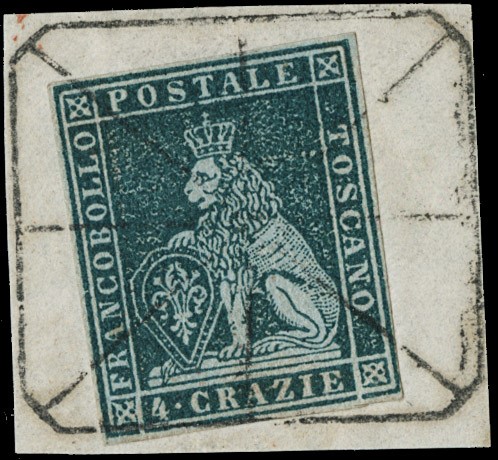 1851 - 4cr, quattro esemplari sciolti e uno su lettera in cinque tonalita' di colore differenti, da ben marginati a molto ben marginati. Alcuni siglati Em.Diena, A.Diena, Raybaudi e G.Oliva (Sassone 6, 6a, 6b, 6c, 6d - Euro 2.725)