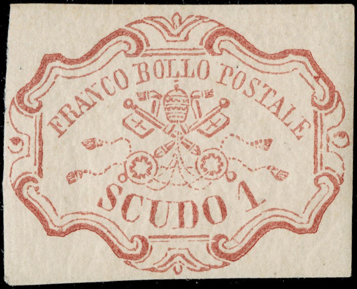 1852 - 1 scudo carminio, ben marginato, nuovo con