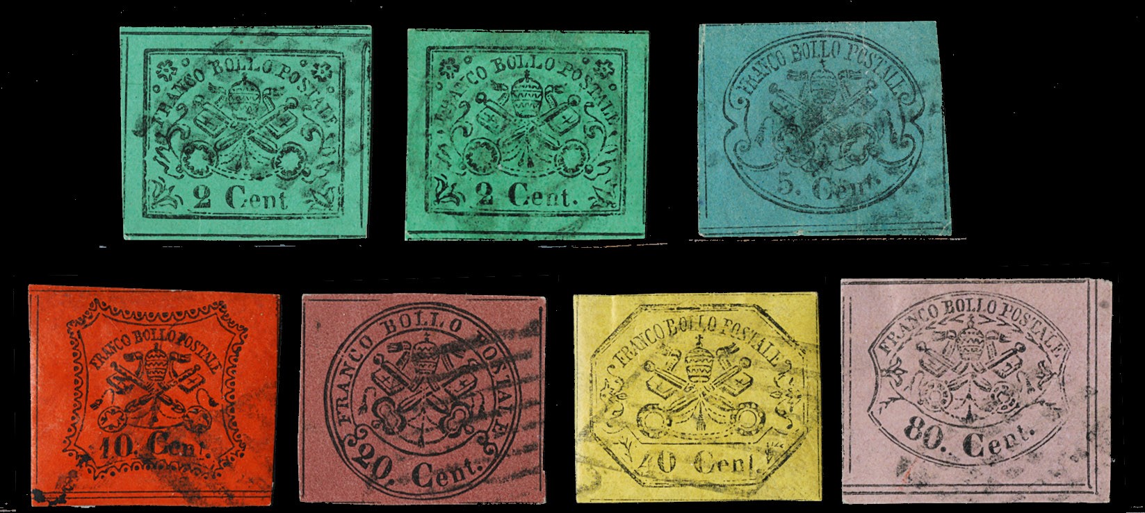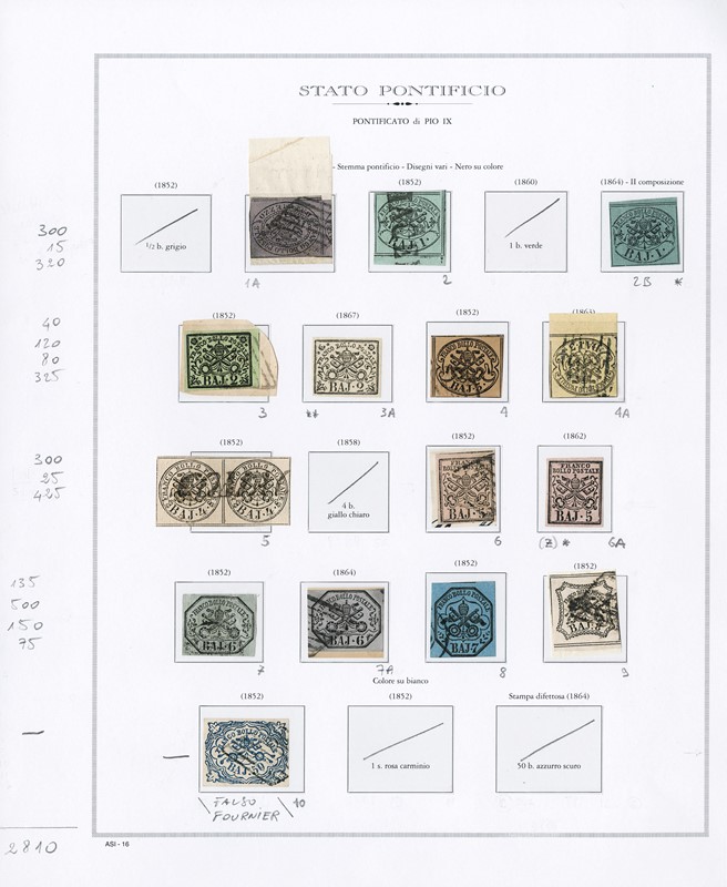 1852/67 - STATO PONTIFICIO: insieme di 22 esemplari della I e della II emissione nuovi e usati, comprendente i valori dal 1/2b all'8b, con anche un'imitazione Fournier del 50b e i valori da 2, 5, 10, 20, 40 e 80c. Ottime condizioni generali, occasione (Sa